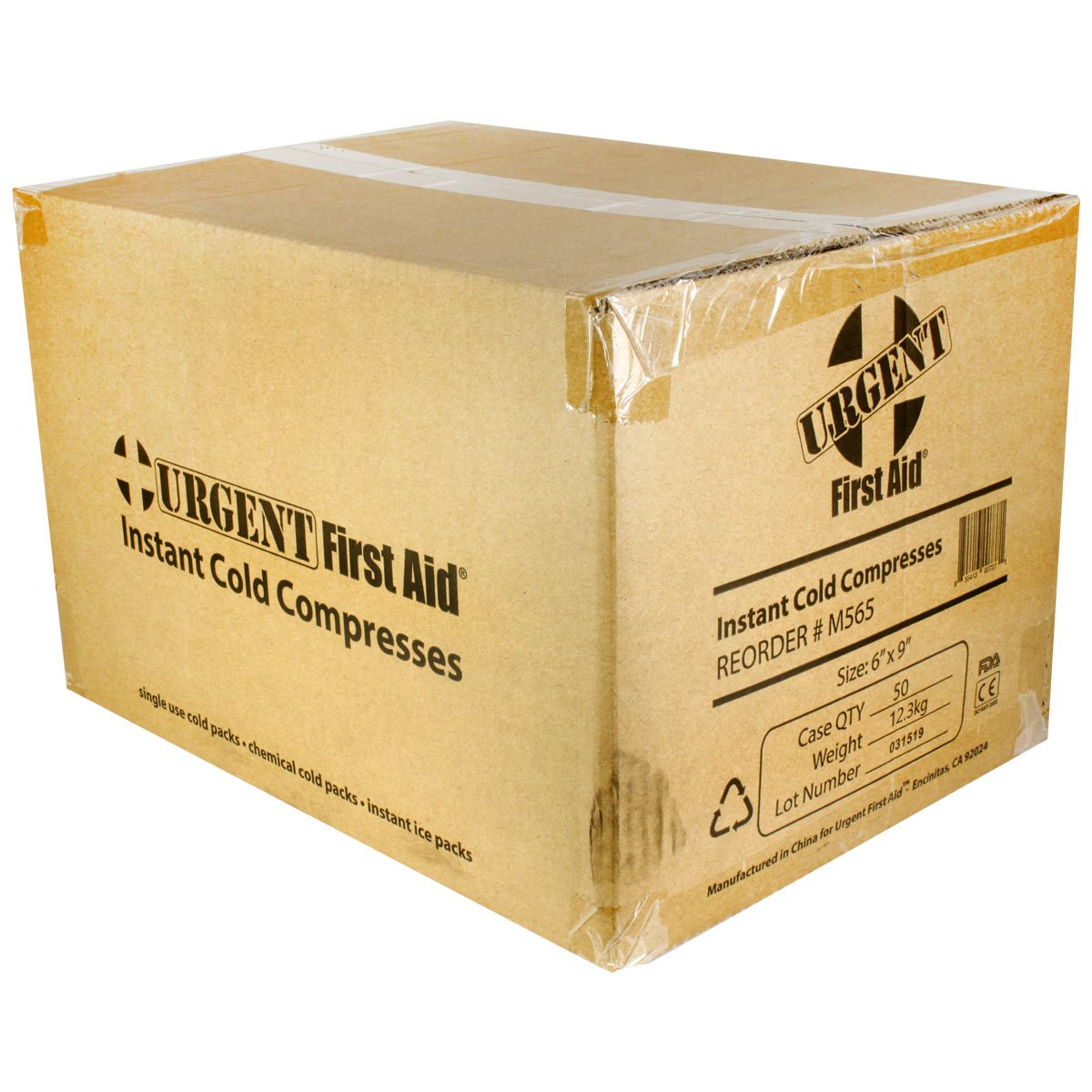 6" x 9" Urgent First Aid instant cold compress, bulk, 50 per case Our 6" x 9" Instant Cold Compress temporarily relieves minor pain and swelling for sprains, strains, aches, bruising, and sore joints. The Urgent First Aid instant cold packs are conveniently disposable with no pre-chilling required for quick, effective relief. No messy ice bags needed. Just shake, squeeze, shake again and apply for instant cool comfort and treatment of injuries. This cold pack conforms with the specific ANSI Z308.1-2015 requirements for cold packs in first aid supply uses: "Each cold pack shall be at least 4 x 5 in. (10 x 12.5 cm) in size and shall reach a temperature between 20 - 40 F (-6 - 4 C) within 10 seconds of activation and shall maintain this temperature for a period of at least 10 minutes. Cold packs shall activate under normal hand pressure and shall not leak under normal conditions of use." Store in a cool, dry place. May be harmful if swallowed. We prefer the urea and water cold packs to the older ammonium nitrate as these are non-hazardous, and can be express shipped when necessary (although shipping for any cases of cold packs is expensive, as they have high liquid content, so it becomes comparable to shipping a box of water!) Bilingual Label (English on one side, Spanish on other)