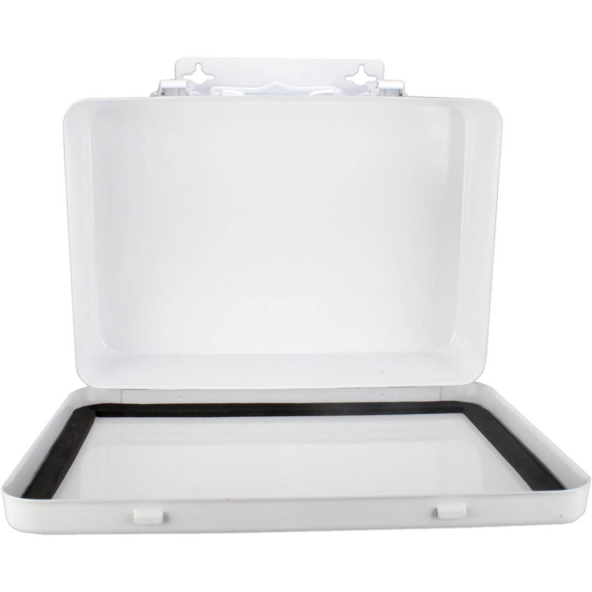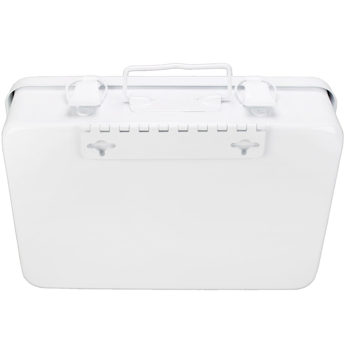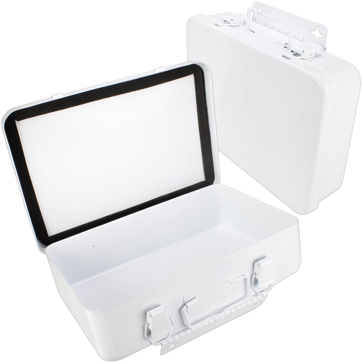 16 Unit, Empty Metal Case, 1 Shelf, Hinged w/ Gasket, 9-1/16"x 6-5/16"x 2-3/8", Horizontal - 1 Each This horizontally configured empty metal first aid case features 1 shelf, hinges and a gasket. Holds up to 16-units of product. Kit Dimensions: 9-1/16"x6-5/16"x2-3/8"