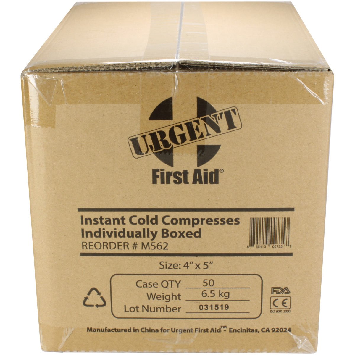 4" x 5" Urgent First Aid™ instant cold pack, boxed, 50 per case Our 4" x 5" Instant Cold Compress temporarily relieves minor pain and swelling for sprains, strains, aches, bruising, and sore joints. The Urgent First Aid™ instant cold packs are conveniently disposable with no pre-chilling required for quick, effective relief. No messy ice bags needed. Just shake, squeeze, shake again and apply for instant cool comfort and treatment of injuries. This cold pack conforms with the specific ANSI Z308.1-2015 requirements for cold packs in first aid supply uses: "Each cold pack shall be at least 4 x 5 in. (10 x 12.5 cm) in size and shall reach a temperature between 20 - 40°F (-6 - 4°C) within 10 seconds of activation and shall maintain this temperature for a period of at least 10 minutes. Cold packs shall activate under normal hand pressure and shall not leak under normal conditions of use." Store in a cool, dry place. May be harmful if swallowed. We prefer the urea and water cold packs to the older ammonium nitrate as these are non-hazardous, and can be express shipped when necessary (although shipping for any cases of cold packs is expensive, as they have high liquid content, so it becomes comparable to shipping a box of water!) Bilingual Label (English on one side, Spanish on other)