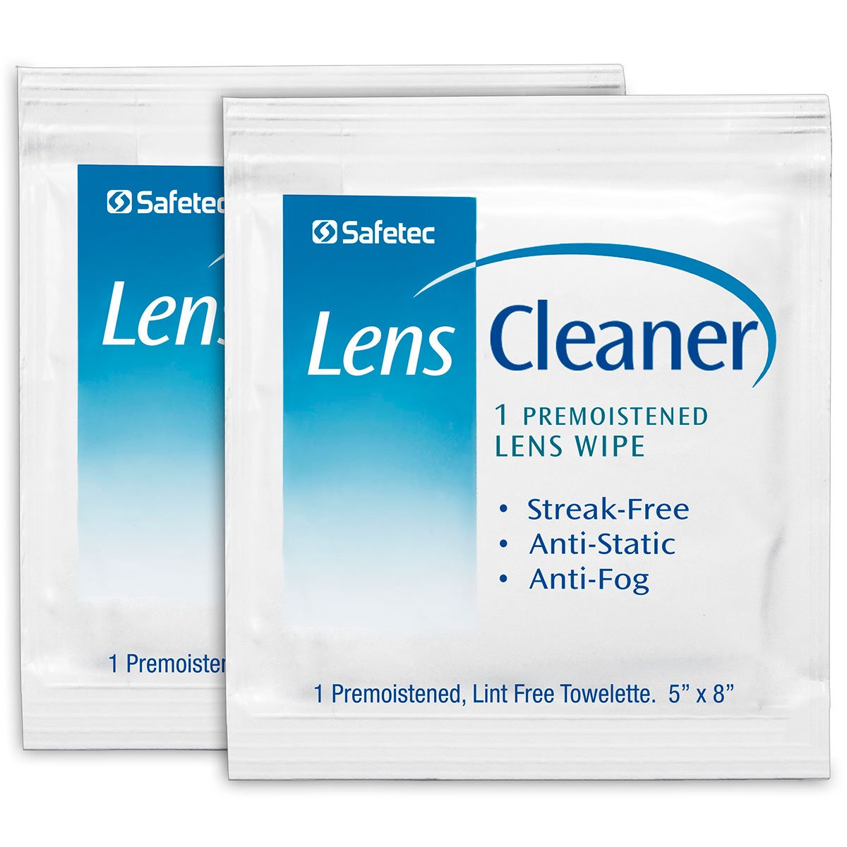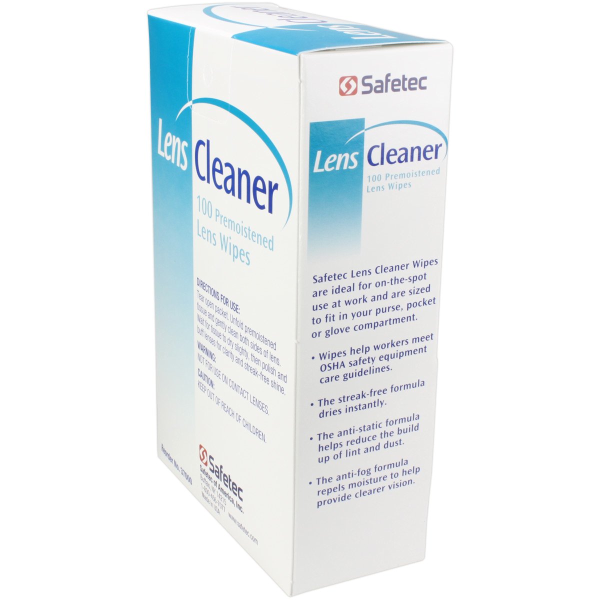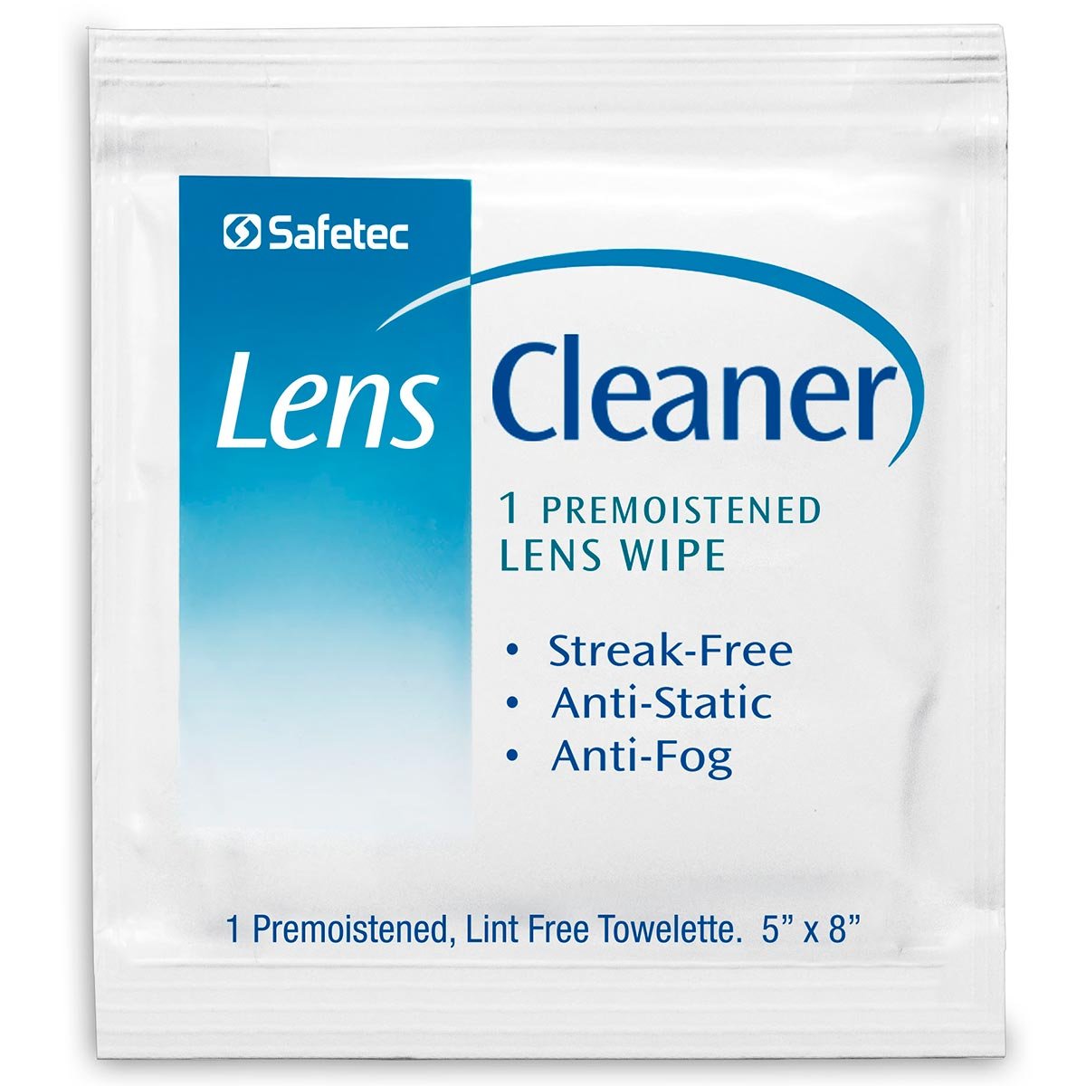 Safetec® Lens Cleaner Wipes are ideal for on-the-spot use at work and are sized to fit in your purse, pocket or glove compartment. Wipes help workers meet OSHA safety equipment care guidelines. The streak-free formula dries instantly. The anti-static formula helps reduce the buildup of lint and dust. The anti-fog formula repels moisture to help provide clearer vision. Lens Cleaner wipes allow for a faster streak-free drying time, resulting in a crystal clear finish every time. The wipes are pre-moistened lens tissues and are anti-static, anti-fog, and silicone free. For use on eyewear, safety glasses, computer screens, keyboards, phones, CDs, DVDs and other glass or plastic items.Wipe Size: 5? x 8?See our Lens Cleaner Wipes informational PDF Buy American Safetec manufactures higher quality products by following strict compliance regulations with faster shipping advantages. Safetec® Lens Cleaner Wipes 100 ct. Dispenser Box