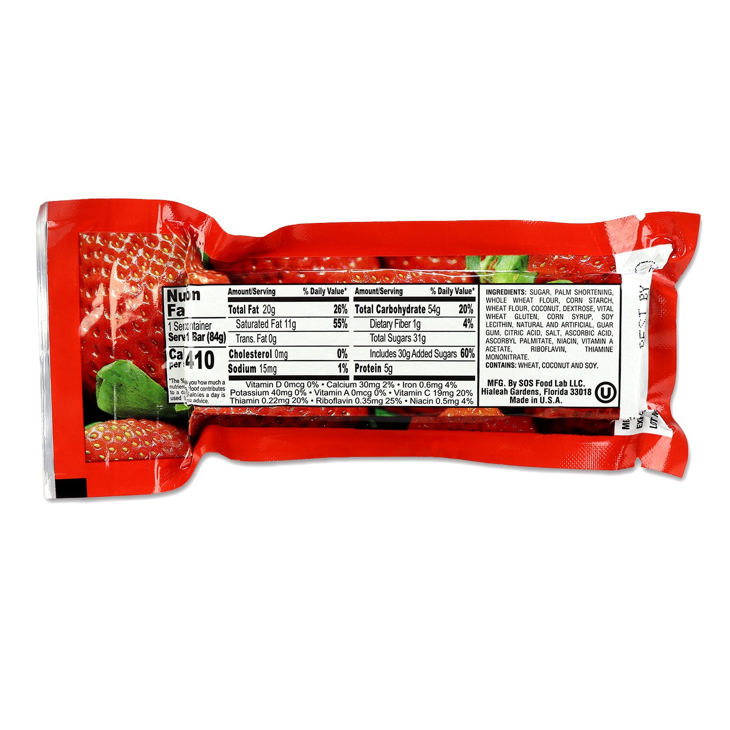 These food bars maximize the physiological efficiency of water usage by including low sodium levels. They also include a sufficient amount of carbohydrates and calories to prevent dehydration. This lightweight strawberry emergency bar is perfect for traveling, camping, hiking, and disaster preparedness kits.