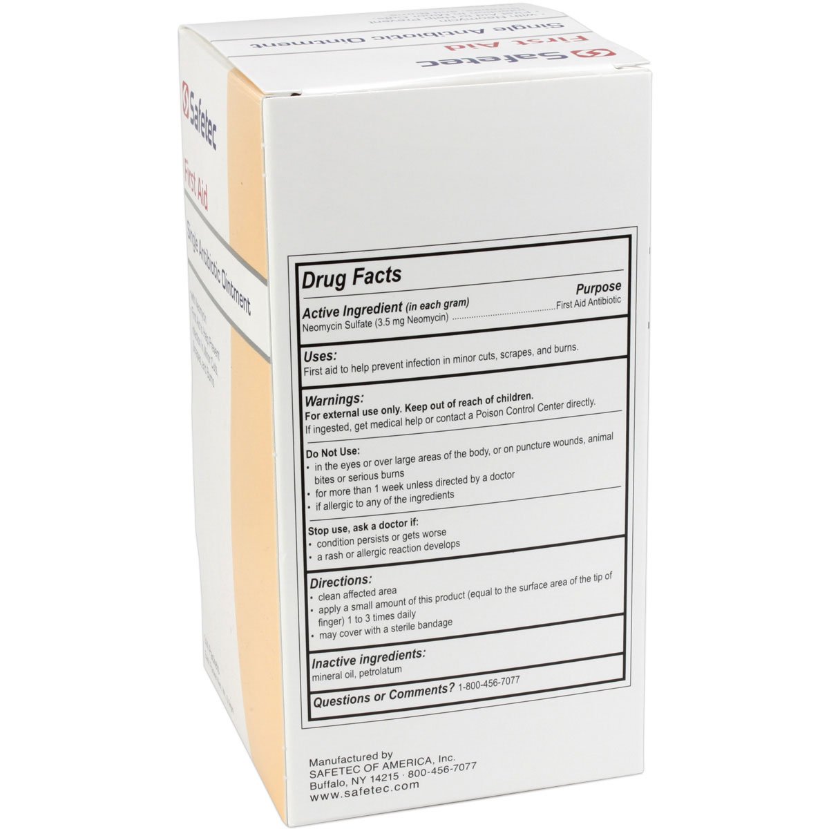 Prevent infection and the spread of harmful bacteria with topical Single Antibiotic Ointment (Neomycin). Apply on minor cuts, burns and scrapes. Our convenient single-use packages make it easy for fast application and instant relief. With Neomycin First aid to help prevent infection in minor cuts, scrapes, and burns Increased Expiration Dates Industry-Leading Shelf Life Buy American Safetec manufactures higher quality products by following strict compliance regulations with faster shipping advantages. 0.9g Single Antibiotic Ointment with Neomycin (144 ct. Box) Pouch: 1.25" x 2.48" / Box: 3.25" x 3.5" x 6.38"NDC 61010-6700-2